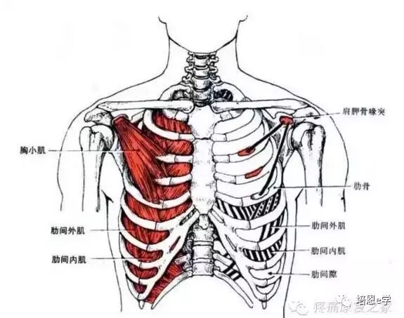 (1)上面部分,附着在第一和第二肋骨上,距离肋软骨几英寸;