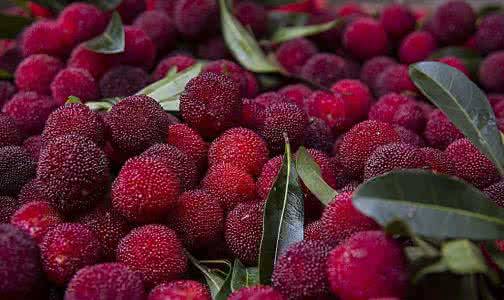 4、发紫的杨梅是熟透的,最好用剪刀将树枝部位轻轻剪断。柄不能留长,以免在 水果篮种“刺伤”其他杨梅。采摘时可以放一层杨梅铺垫一层树叶,避免磕磕碰碰 。只要不扎伤,放两三天都没问题。