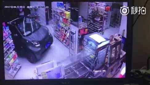 便利店的门大家都知道,是自动感应门,这家店又在街边没有台阶,所以smart就直接开了进去……