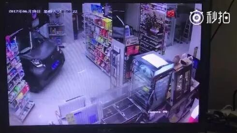 据了解,现场区域空间并不是特别大,好在当时车辆开进来的时候并没有其他顾客,也没有对货架上的物品造成损害……