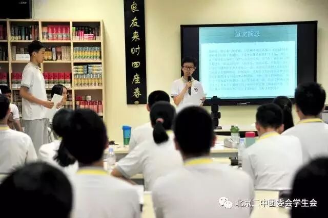 在二中,学无止境。校内课程之余,我们走出校园,去首都博物馆感受中华文化的厚重感,去名胜古迹接受传统思想的启迪,去绿草成茵的公园发现大自然的魅力……