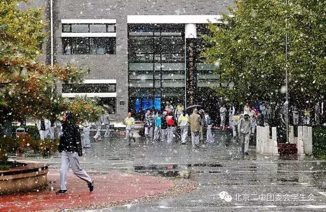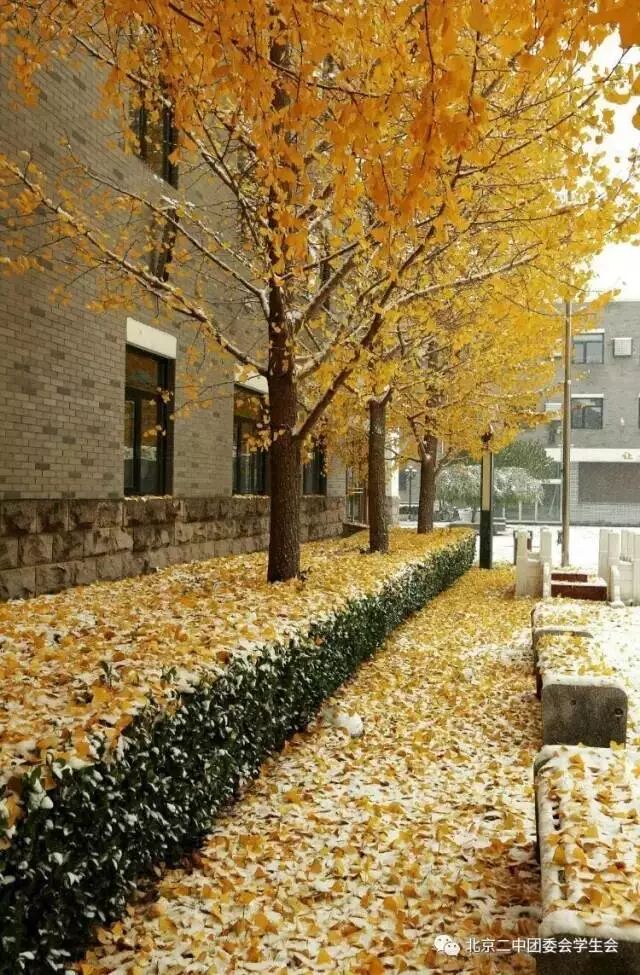 还记得前年秋天的那场雪吗?它轻灵地飘在校园里,无声。深绿,金黄,火红,银白,暗灰。在那一季的秋雪里,快乐和忧伤通通融化。岁月纯净无瑕,教学楼的门前永远明亮,我们的未来也必定光明。