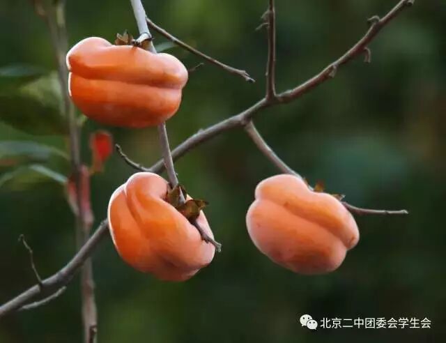 红彤彤的柿子压弯了枝干,茂密的树叶也绿得成熟,高饱和度的色彩扎紧浓浓的喜悦却挡不住果实甜香四溢。你听,年轻的人儿径直走来,围着果树说说笑笑:“我好想摘一颗下来啊!”