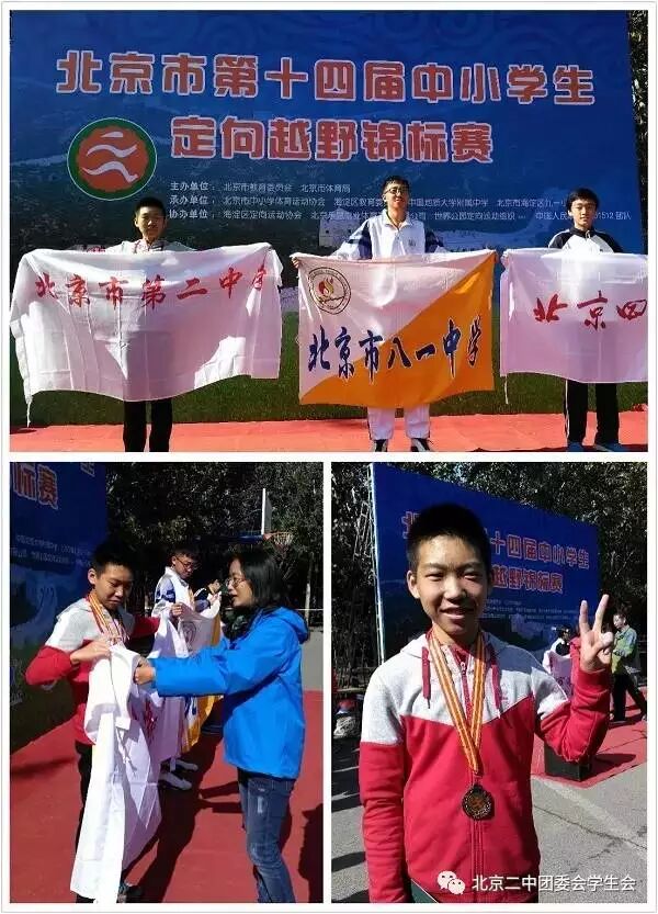 二中学生在北京市第十四届中小学生定向越野锦标赛上获奖。