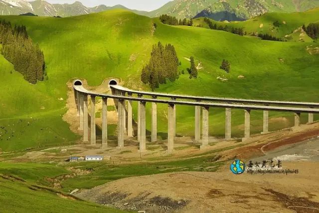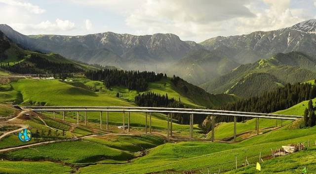 登山果子沟的任一斜坡都可以拍到林带和山脊漫无边际的美景。果子沟的高架桥也很震撼,是中国最美的自驾道路之一。