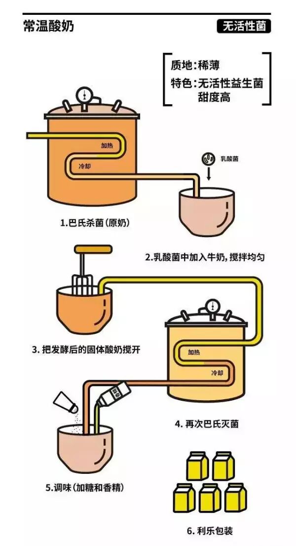 这是因为 ... 常温酸奶里根本没有活性菌!要知道,许多偏远地区的物流完全无法满足活性菌的冷链要求,许多奶商干脆在发酵完成后对酸奶进行一次灭活 ……这样一来,酸奶的保质期大大延长、方便了运输,二来,相似的风味得以保存,何乐而不为呢?但是,益生菌的好处,常温酸奶就一点儿都沾不到了哟。