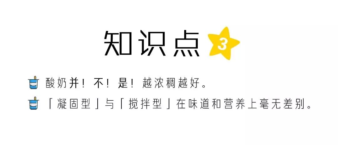 但其实在生产过程中如果不去动放酸奶的容器(所谓「凝固型」),做出来的酸奶就会结成一大块。如果做完后搅拌了再灌装到容器里,就会看起来稀一些(即「搅拌型」酸奶)。两种方法在味道、营养上毫无差别。不信的话,你可以自己拿一点凝固型的酸奶,搅拌均匀之后它们也会变成稀薄的流动状态。