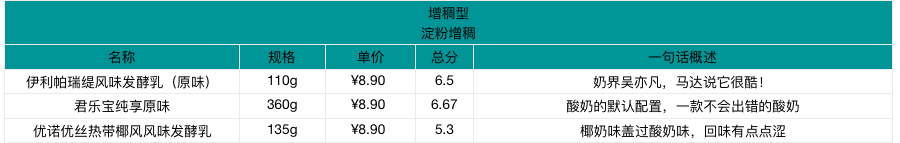作为淀粉增稠组的选手,君乐宝纯享有点以不变应万变的意思,它拥有适中的细腻度、奶香、和不扣分的甜,就这么轻松胜出了。伊利的「帕瑞缇」输在有苦味,而优诺则因为过重的椰奶重而让人无法识别到奶香。