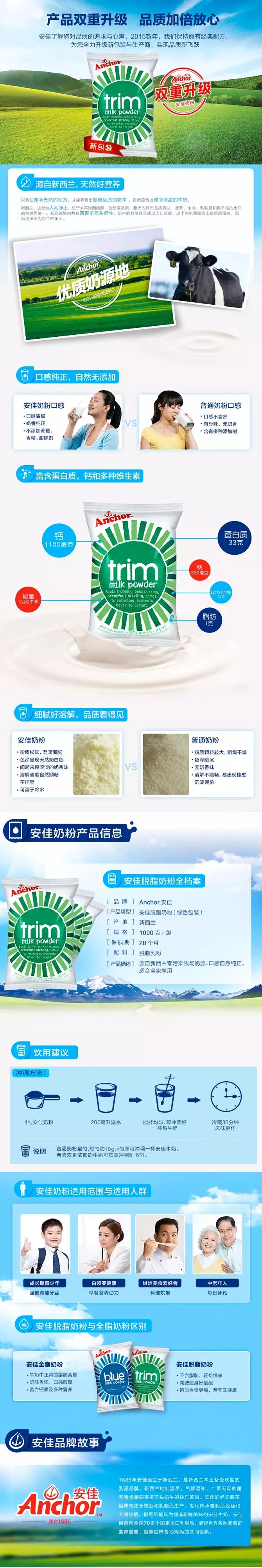 安佳脱脂成人奶粉袋装,喝起来更健康!