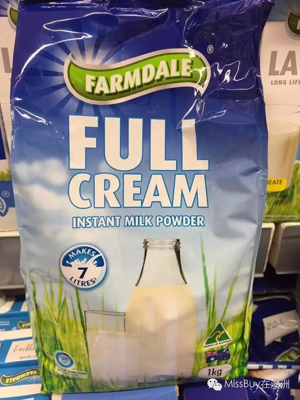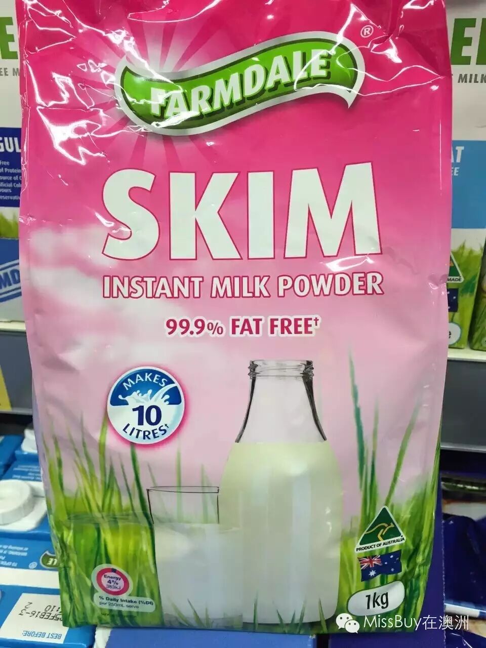 Farmdale全/脱脂高钙牛奶粉,等同鲜奶般的味道!一包1kg可冲出7升奶,冷热冲调均可!天然放牧的优质奶源,口味清新!这款绝对是性价比第一的袋装奶粉!