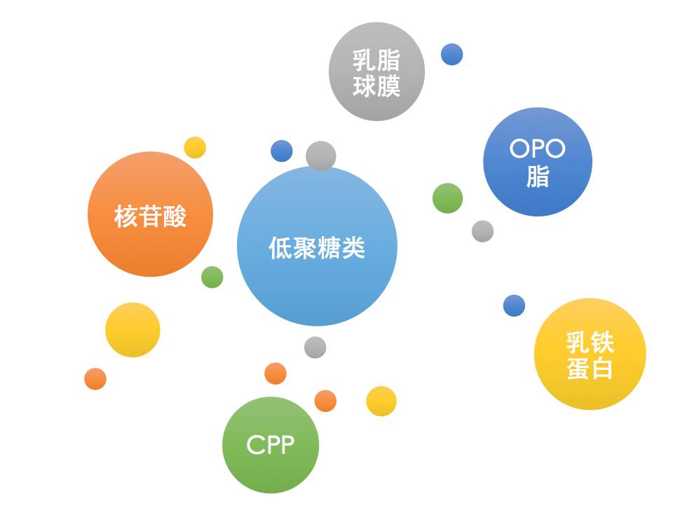 市场上配方真是百花齐放,一是为了模拟母乳,更大的原因在于通过增加配方来增加竞争力。比如乳铁蛋白、乳脂球膜、核苷酸、叶黄素、CPP、OPO结构脂等。
