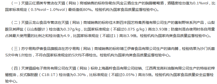 近期,、肉制品、食用油、油脂及其制品和蛋制品等4类食品563批次样品,抽样检验项目合格样品559批次,不合格样品4批次,不合格样品如下