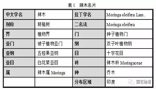 辣木(Moringa oleifera)又称鼓槌树(Drumstick tree),原产北部,是多年生热带落叶乔木,是一种有独特经济价值的热带植物,本科仅有一个属。辣木,白花菜亚目辣木科,辣木属乔木,高3~12米,树皮软木质;枝有明显的皮孔及叶痕,小枝有短柔毛;根有辛辣味。全世界约有14个品种,目前较常食用的品种有以下三种:传统辣木(Moringa oleifera Lam.)、改良种辣木( T.N. 农业大学的改良种,早生且具高豆荚产量)和非洲辣木(原只产于肯尼亚图尔卡纳湖附近及埃塞俄比亚西南部),其中生长快、分布广且利用和研究最多的种是Moringa oleifera Lam。辣木树适宜在热带、亚热带地区生长,中国南方广东、福建、广西、云南、台湾及海南等省份皆可以种植。