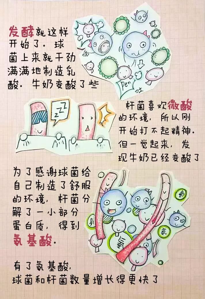 而液态的牛奶是如何变成接近固态的酸奶的呢?这涉及到蛋白质“变性”的一个过程。大家可以想想煮鸡蛋的过程。生蛋清是液态的,煮熟了就成了固态。在这个过程中,蛋白质也是发生了变性。只不过在煮鸡蛋过程中我们利用了热量让蛋白质变性,而这里我们利用了乳酸菌产生的乳酸。