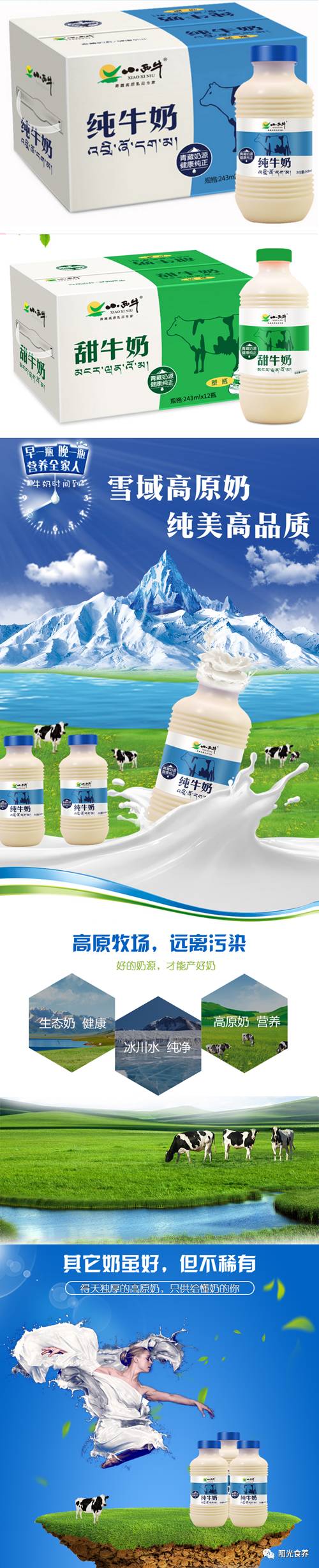青海小西牛纯牛奶、甜牛奶