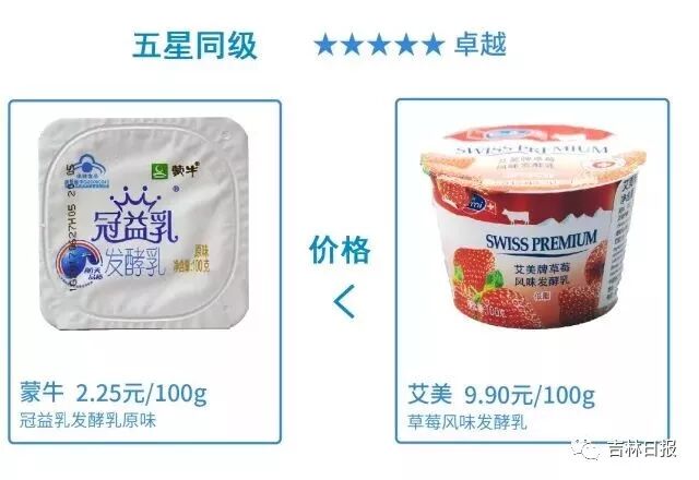 获得五星好评的6款酸奶,国内品牌的酸奶的价格比进口品牌的酸奶的价格要低。其中,最贵的酸奶是进口品牌低脂的艾美草莓风味发酵乳,价格为9.9元/100g; 而同等级的国内品牌蒙牛冠益乳发酵乳原味售价仅为2.3元/100g。