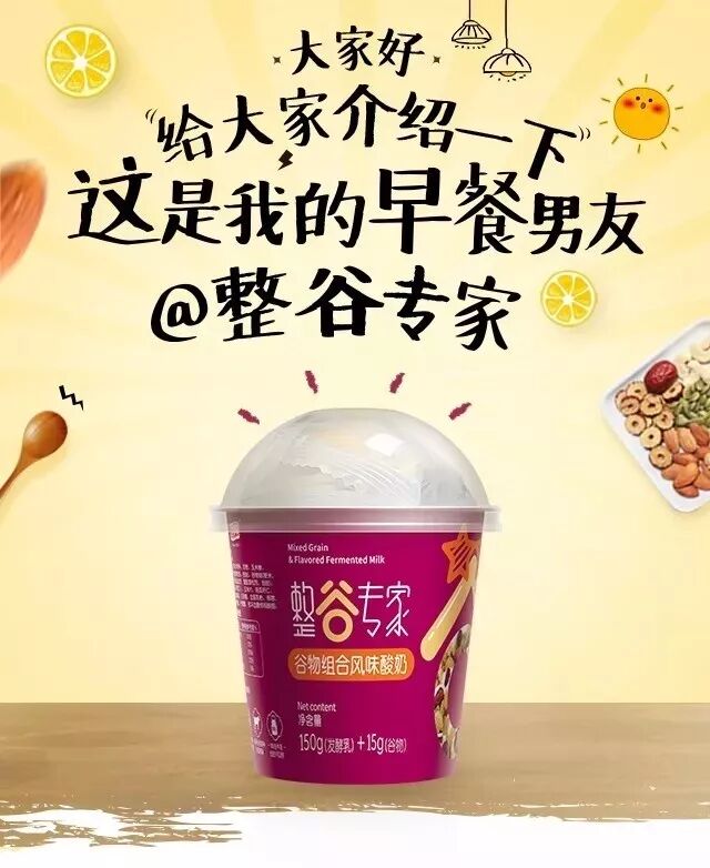 【差异化亮点】:这是一款富含膳食纤维的谷物酸奶,消费者在享用时,可以充分享受DIY和咀嚼的乐趣,在酸奶中加入水果、饼干碎等元素,成品不仅营养丰富,更具有低脂代餐的健康功效。