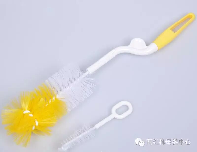 然后分别洗净奶嘴和瓶身,再用小刷子刷净残余物。