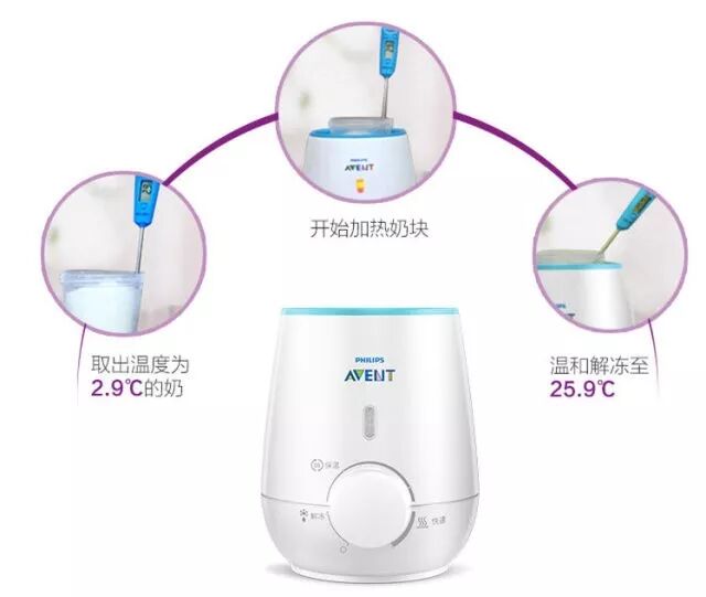新安怡温奶器可以恒温解冻奶水,保留母乳中的营养成分和维生素不流失。