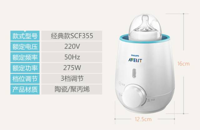 150ml的奶水,放进温奶器中,只需3分钟就可完成加热的任务。