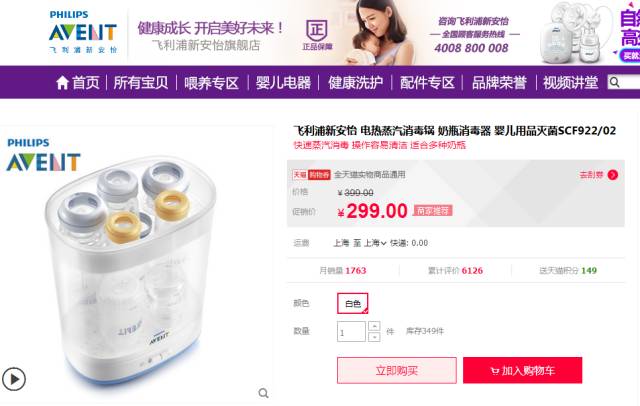 品名:飞利浦新安怡电热蒸汽消毒锅