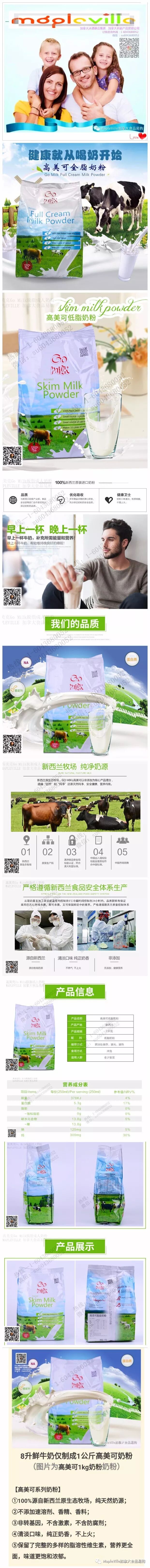 ①100%源自新西兰原生态牧场,纯天然奶源;