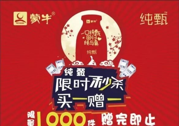 蒙牛纯甄限时秒杀买一提赠一提,限量抢购1000提,先到先得。(每人限购5组)