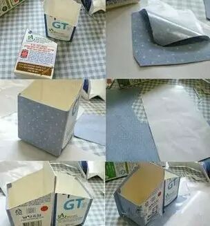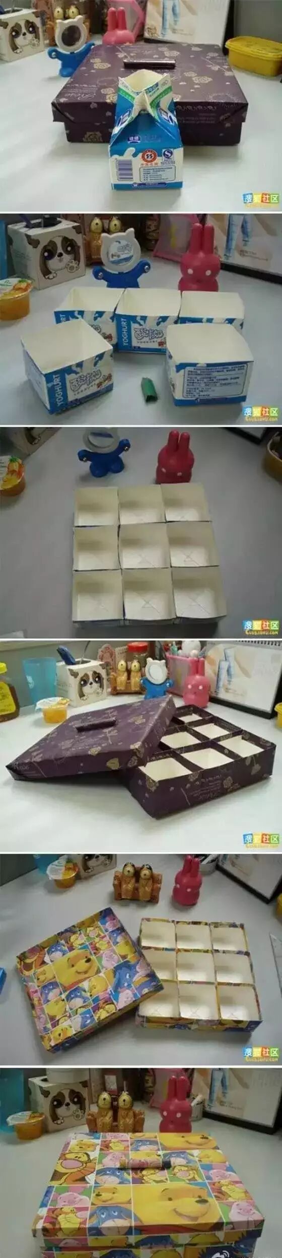 除了塑料的酸奶盒,下面这种纸盒也可以做成一个很好用的收纳盒。