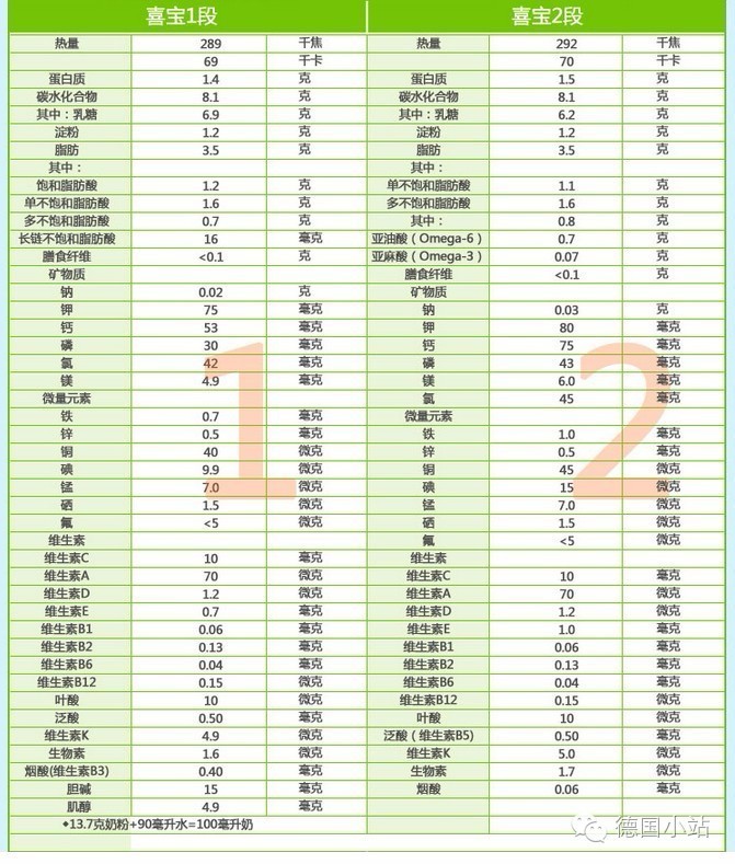 德国喜宝有机1段配方表是按照每100ml奶说明维生素A含量的,而100ml奶仅含13.7g奶粉,新闻里却把100ml奶含量说成100g奶粉含量,才会导致这么大的差异!