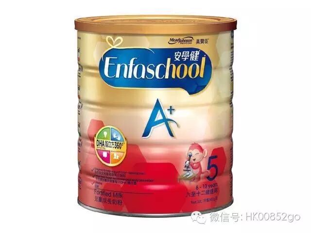 儿童成长奶粉,适用于六至十二岁,每100克含有60毫克的DHA, 有助达到专家建议每日DHA摄取量