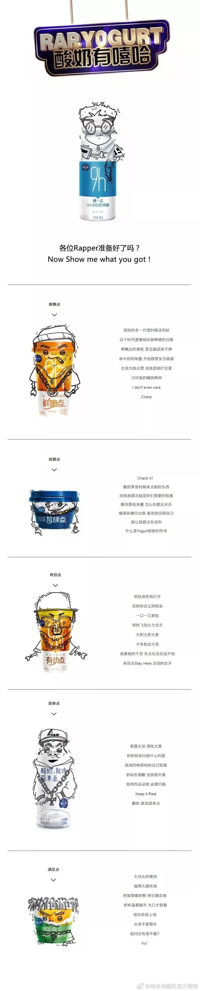 除此之外,热点也不能放过,味全优酪乳根据今年夏天最热的综艺《中国有嘻哈》推出了“酸奶有嘻哈”。