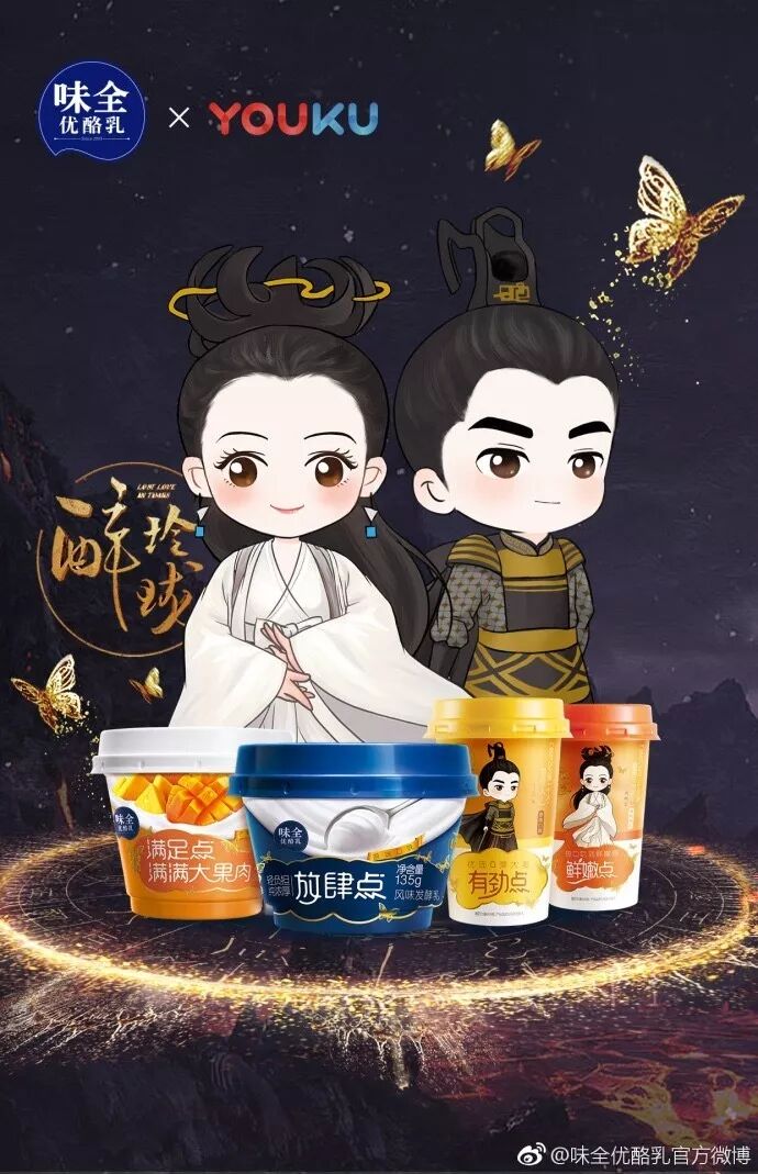 当然,IP也是少不了的,味全优酪乳和《醉玲珑》合作玩了一波古装推广,从酸奶瓶的IP植入到《醉玲珑》的中插广告,一个都不能少。