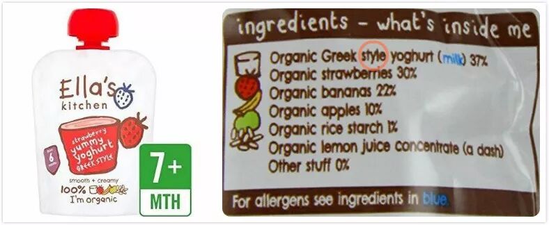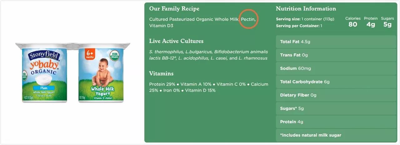 Stonyfield旗下的Yobaby品牌是专门做给6个月以上婴儿吃的酸奶,但配方一定淳朴吗?不是的哦。