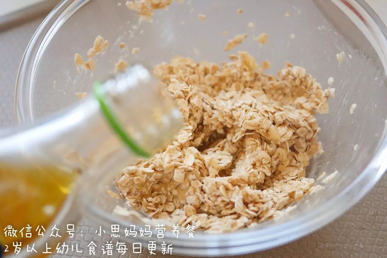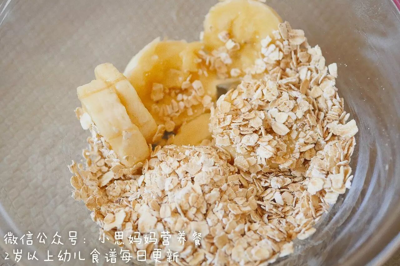 5. 在混合好的燕麦香蕉泥中加一点植物油。