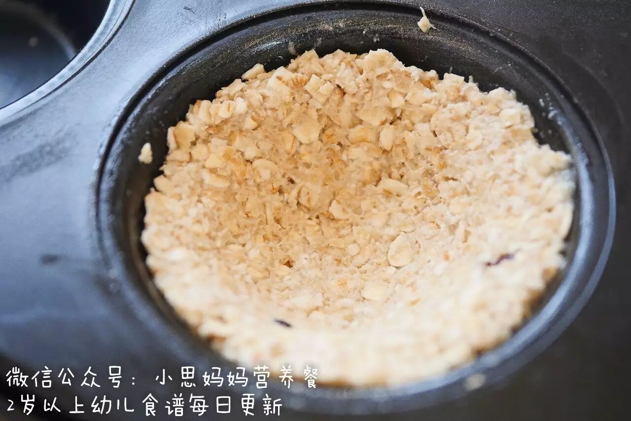 10. 用手或者是小一点的容器底部,把燕麦泥压出一个小坑,做出杯子的形状。
