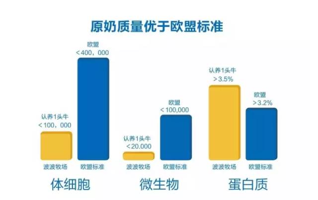 经过一年的打磨和产品迭代,牧场出产的牛奶蛋白指标已稳定地达到3.5以上,鲜奶细菌数在2万以内,体细胞在10万以内,远远优于欧盟标准。