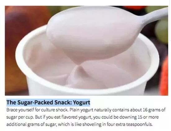 国外有媒体将酸奶称为Sugar-Packed Snack,意思就是糖分爆炸的零食。