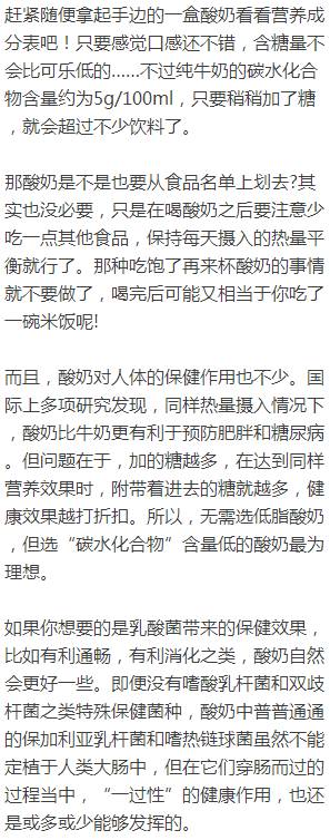 某品牌可乐营养成分表上表明100ml可乐中含有190千焦能量和11.2克碳水化合物,而市面上搜集的某酸奶的营养成分表标明每100g酸奶中含有362千焦能量和12.5克碳水化合物。惊呆了有木有!平时一直当做健康饮料喝的酸奶竟然热量这么高!(小编注:可乐与水密度基本相同,100毫升可乐约为100克。)