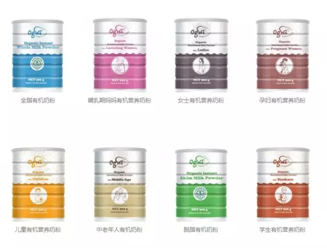 现在,奥戈尼有机奶粉共有8个品种,分别是: