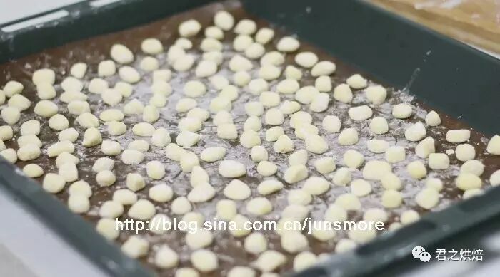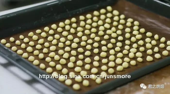 8、把小圆球随意的撒在烤盘上,小圆球之间留出一定空隙,不要让它们太过拥挤。放入预热好180℃的烤箱,中层,烤10分钟左右,直到小圆球表面变成浅金黄色即可出炉。