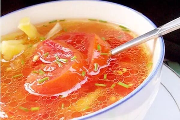 说明:此汤含锌量约35毫克。西红柿有清热解毒的作用,所含胡萝卜素及矿物质是缺锌补益的佳品。
