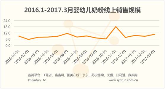 2017年1季度线上婴幼儿奶粉销售趋势分析