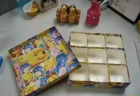 除了塑料的酸奶盒,下面这种纸盒也可以做成一个很好用的收纳盒。