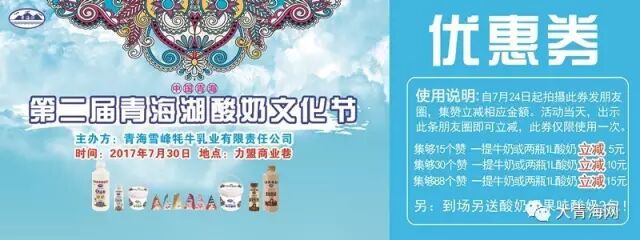 为了传承、传播青海酸奶文化,2017年7月30日,青海雪峰牦牛乳业将在青海省会西宁市,隆重举办第二届青海湖酸奶节活动,现场准备了丰富的活动和节目,以及大量的酸奶礼品!有多种互动活动可以赢取礼品或者优惠,极具人文特色的文艺演出,还有两大坛青海湖酸奶供千人品鉴,更有“喝酸奶大赛”超大瓶超好喝的酸奶让你一次喝个够。