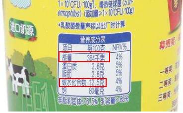 上图这个就是非常典型的酸奶热量代表