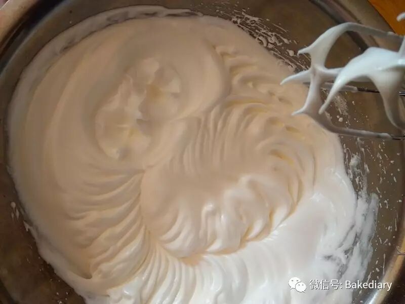 4. 蛋白分三次加糖,加发至九分发(尖角弯弯的);