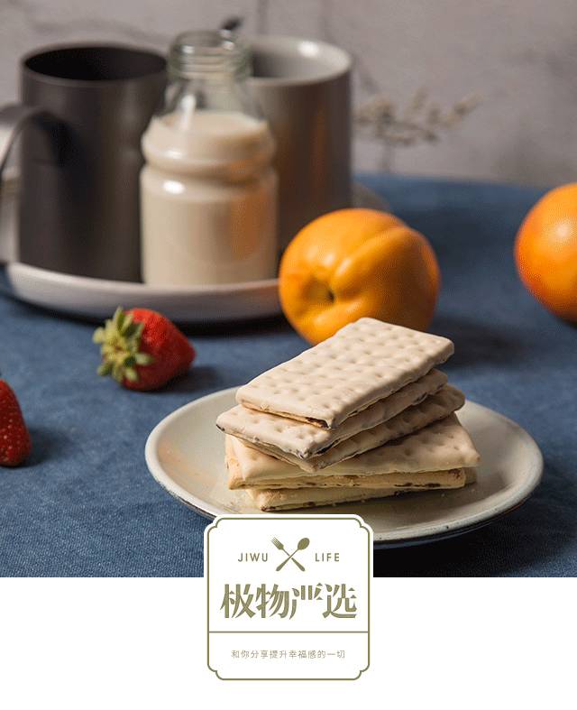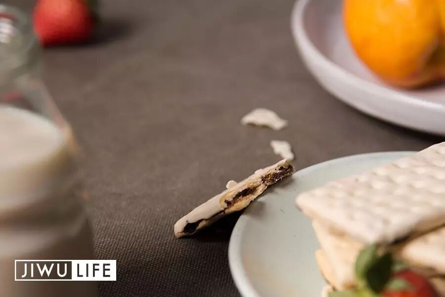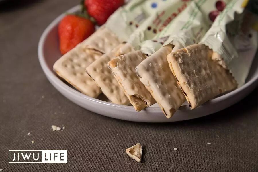 轻轻一咬,新鲜小麦粉烘焙而成的夹层饼干,发出咔嚓一声的轻响,干脆极了。不会像其他饼干一样,吃完满地是残渣。