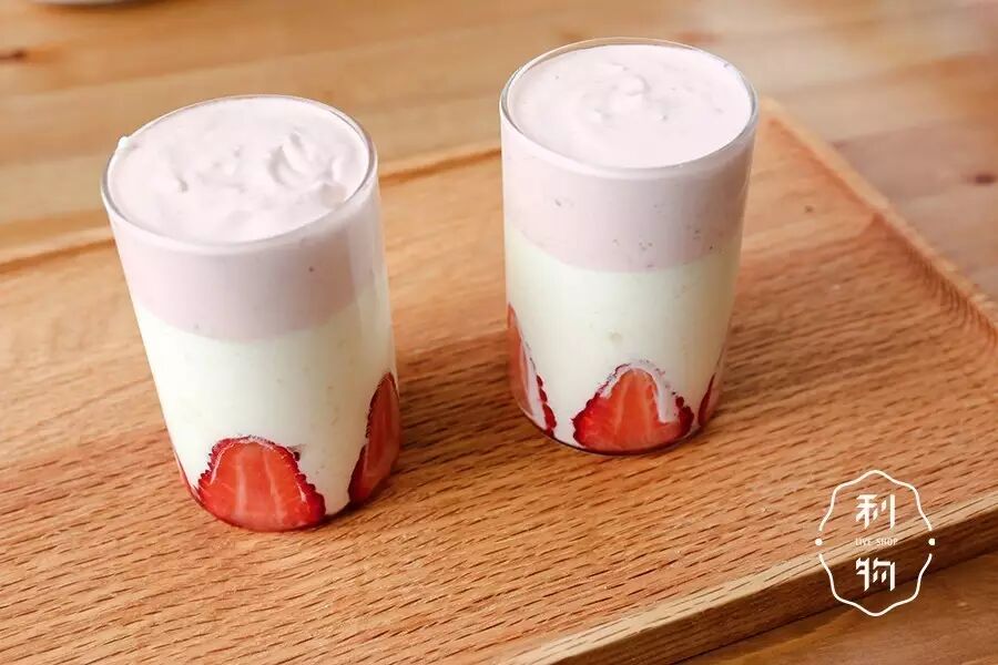再不吃草莓,草莓就要下市了。印象中,和我关系好的女孩子并没有太多人执念于草莓或是粉红色,反倒是男生当中好几位「硬汉」都特别迷恋草莓口味,蛋糕会点草莓蛋糕、冰淇淋也要草莓冰淇淋。简直不敢想象,如果下次把他们聚到一起,给他们一人一杯这个样子的草莓酸奶慕斯,他们是否会拉着小手转圈圈(笑)