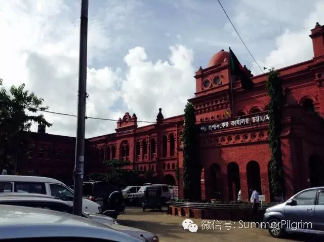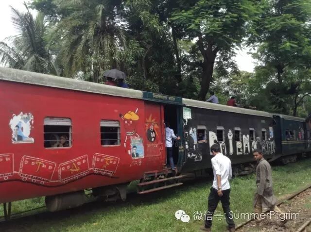 永乐十年并永乐十三年,二次上命太监侯显等统领舟师賷捧诏敕,赏赐国王、王妃、头目,至其国海口,有港曰察地港,立抽分之所。其王知我中国宝船到彼,遣部领賷衣服等物人马千数迎接。 这些文中的“察地港”,就是吉大港的旧译。吉大港是中国海上丝绸之路在孟加拉地区的第一站,是当年郑和曾登陆过的地方。中国的船只到此要先交税,再换小船沿内河到王都。这条路也并非中国人首创,14世纪摩洛哥的旅行家伊本·白图泰也这样走过,并这样描述着这座城:我在海上航行了四十三天后才抵达孟加拉国。……我到过的第一个孟加拉国的城市是素德卡万城(吉大港)。这是一座气势宏伟德城市,坐落在大海岸边。印度人顶礼膜拜去朝觐德恒河和郡江在此地交汇入海。河里来往航行的船队如穿梭一样。他们和莱克诺提人打仗时用的就是这些船只。 这些文字单是在舌尖绕一遍,便已觉荡气回肠。或许由于自古就是贸易枢纽,吉大港地区的方言别具一格,与孟国其他地方迥然不同。不止一个当地人同我说起,吉大港的孟加拉语中混合了多国的语言。比如说 “我”的发音极其类似于英语的“I”。而当吉大港人表示“好的,可以”之类的意思时,会说一连串的“hohohohoho!!”,听起来很像中文的“好好好!”让人倍感有趣。 在吉大港为我当地陪的,是一枚名叫“Jayanto”的小哥。这是一个典型的印度教名字,意为“胜利”。胜利小哥带我游览的第一站,就是邀请我去他的母校吉大港大学看看。 吉大港大学在城郊,之间有火车作为交通。吉大港是南亚最早引入火车这种现代运输方式的地方之一。今天在 CRB广场上,还陈列着孟加拉国的第一个火车头。老的铁路办公建筑今天被用为警察办公处,大概唯一不变的,就是那种仿佛高高在上的“神圣不可侵犯性”吧。 出发之前胜利小哥很认真地警告我,火车的舒适度会非常差,但当我做好了十足的心理准备之后,却发现这其实是个很有趣的旅程。这是一辆专门在市区和30公里外的吉大港校区往返的区间车,车厢的设施大概相当于孟国火车的shuvon级别(最低),却是完全免费的。最吸引人眼球的,是车厢外的涂鸦彩绘。红红绿绿的小火车上,喷绘着各种图案和字母,显示着学生们十足的创意。胜利小哥说,除了车厢,他也时常坐在车顶上,因为座位是十有八九抢不到的,连椅被上也坐着学生。壁上的灯也看起来摇摇欲坠。好在依照南亚传统,这车开得极慢,期间还要停车一次为另一辆货车让路。“那辆车的车厢是中国造的。”小哥认真地告诉我,在这里并不难找到中国的痕迹。