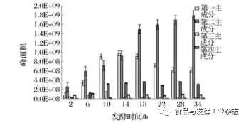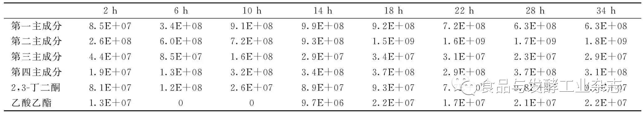 表5 样品2发酵过程中主成分含量变化 单位:mV·min